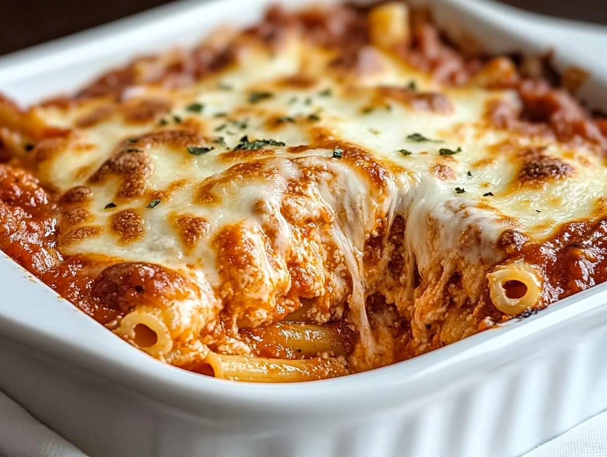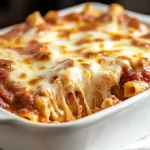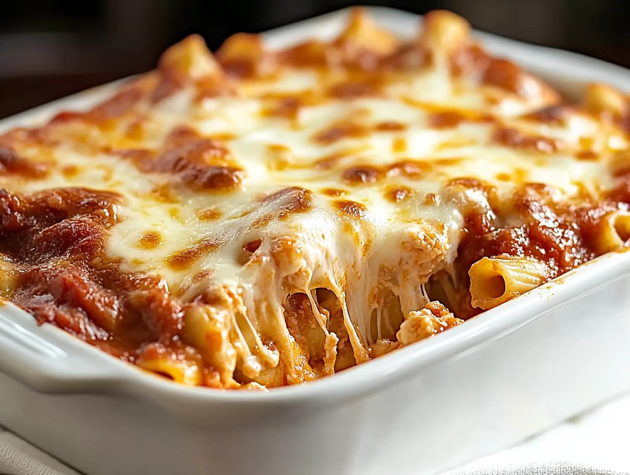 3. What’s the best way to reheat baked ziti? To reheat leftovers, cover the dish with foil and warm it in the oven at 350°F (175°C) until heated through. For smaller portions, you can microwave it—just add a splash of marinara sauce to keep it from drying out.