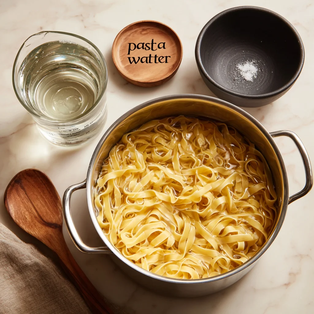 Start by bringing a large pot of salted water to a boil. Drop in your fettuccine and cook it according to the package directions until it’s al dente. That perfect chew is what you’re going for — not mushy, but not undercooked either.