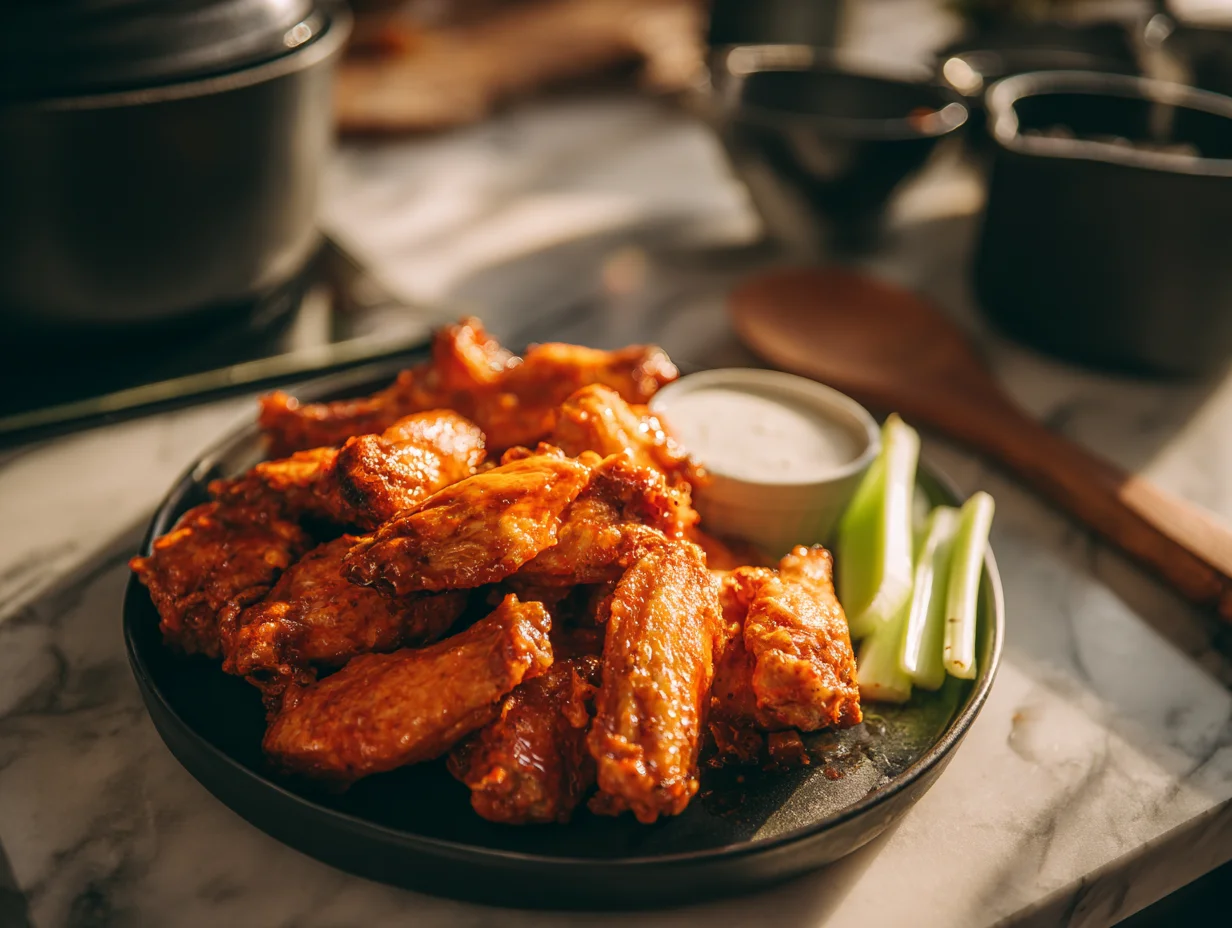 Serve them immediately while they’re still crispy and piping hot. And don’t forget the classic sides — celery sticks, carrot sticks, and a generous helping of ranch or blue cheese dressing.