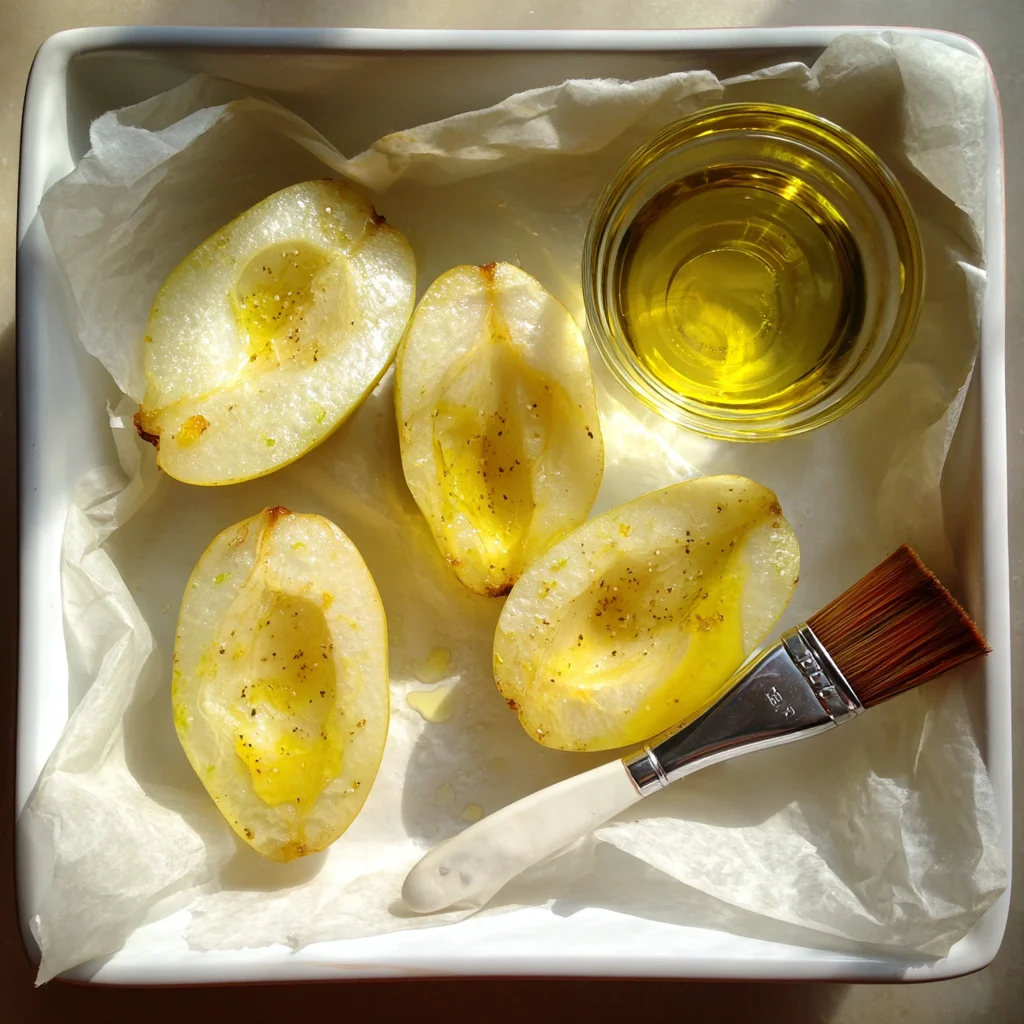 Start by preheating your oven to 375°F (190°C). Line a baking dish with parchment paper or lightly grease it with olive oil. You want just enough space to fit all the pear halves without overcrowding.
