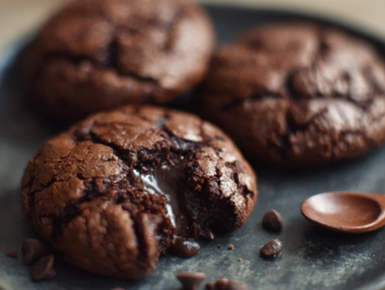 Fudgy Chocolate Lava Cookies with Gooey Center and Crackly Top