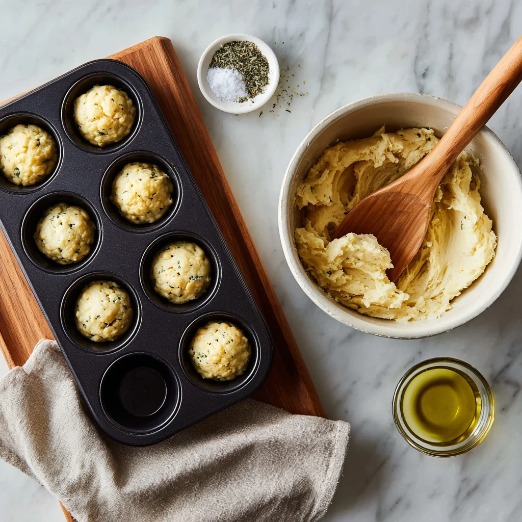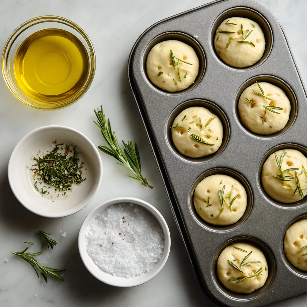 Welcome back! If your kitchen is already smelling like warm garlic and rosemary, you’re definitely doing things right. In Part 1, we covered the dough, the first rise, and how to get those muffin tins prepped and filled. Now it’s time to bring these golden beauties to life with some olive oil love, flaky sea salt, and a quick trip into the oven.