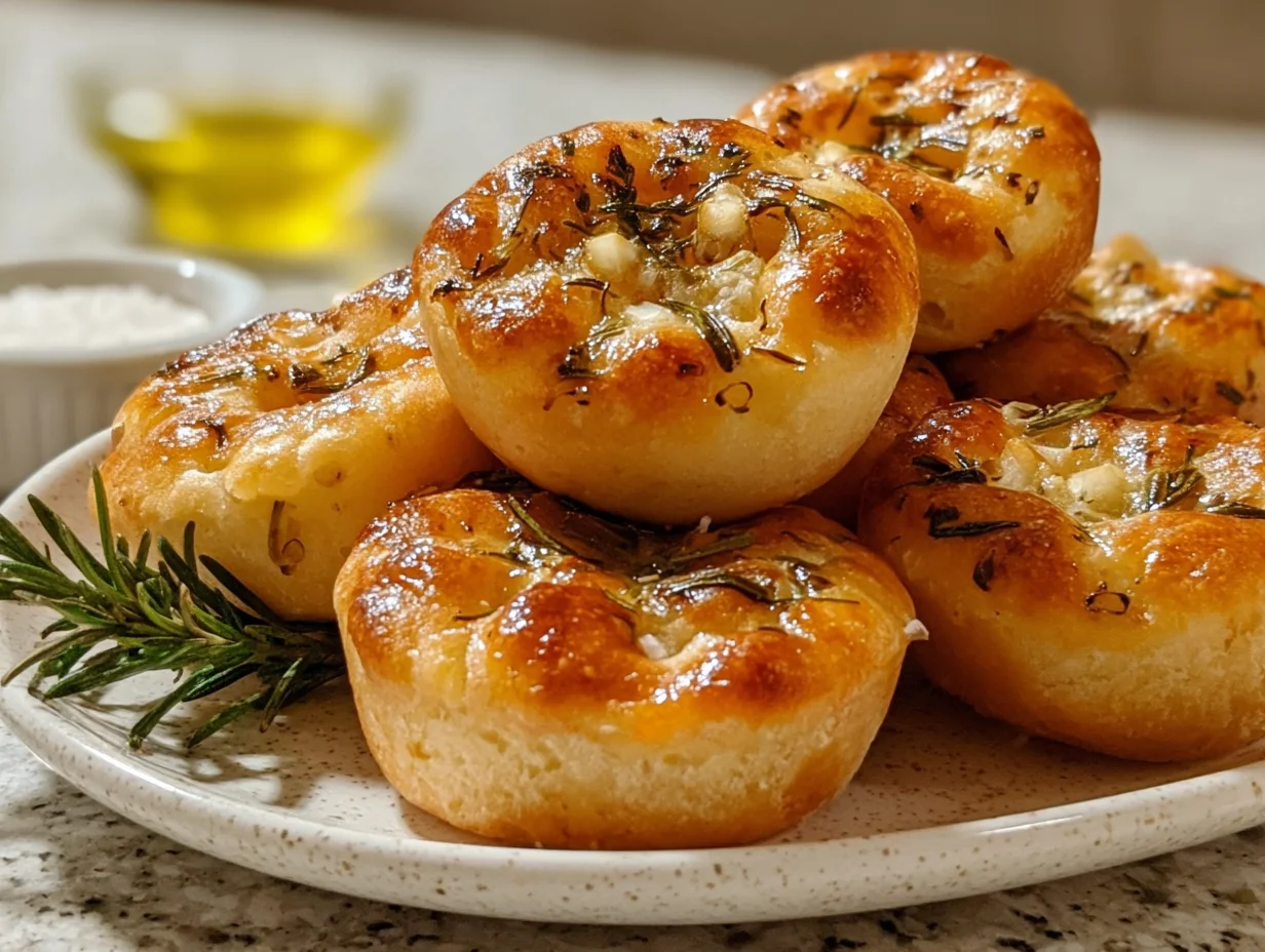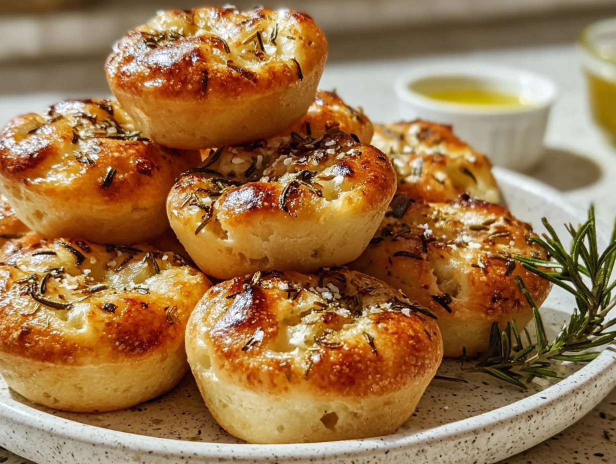 Golden Crust Garlic Rosemary Focaccia Muffins