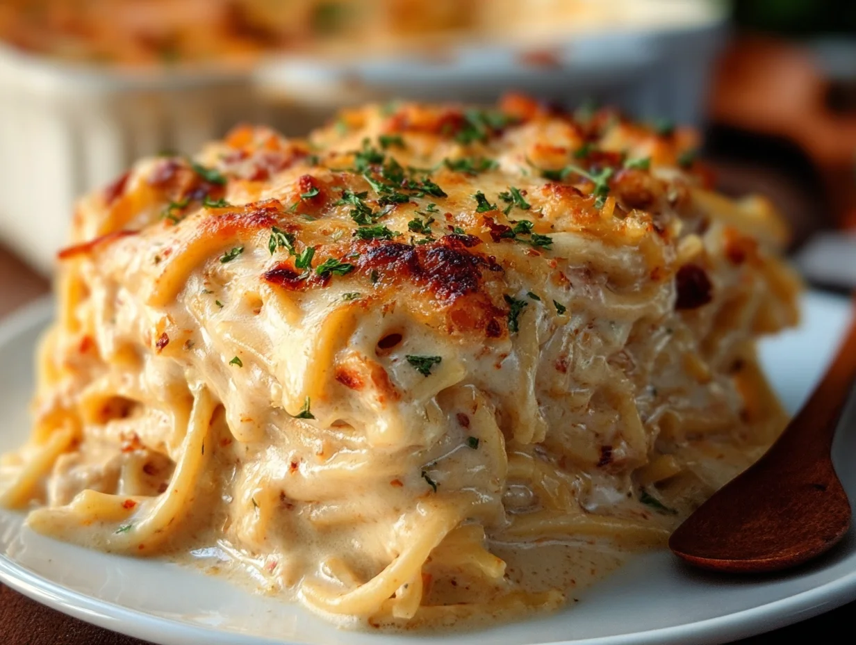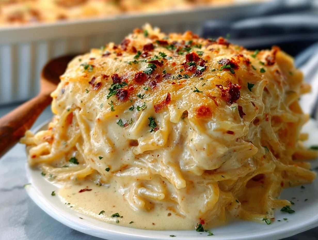 This Irresistible Spicy Southern Chicken Spaghetti Casserole is a rich, comforting classic with a fiery twist. Tender shredded chicken is tossed with spaghetti in a creamy, cheesy sauce loaded with Southern spices, diced tomatoes, and just the right amount of heat. It’s baked until golden and bubbly, making it perfect for potlucks, family dinners, or when you’re craving something cozy with a bold Southern kick.