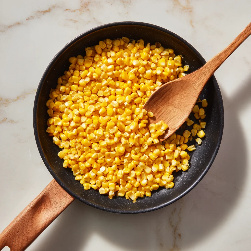 Start by heating a large skillet over medium-high heat. Add your butter or olive oil and toss in the corn. If you’re using frozen corn, there’s no need to thaw—just toss it in straight from the bag. Sauté for 6 to 8 minutes, stirring occasionally, until the corn starts to get those golden brown, slightly charred bits.