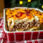 This casserole combines the hearty goodness of a classic meatloaf with the rich, comforting flavors of loaded mashed potatoes. Topped with cheddar cheese and bacon bits, it’s an easy one-dish meal perfect for family dinners.
