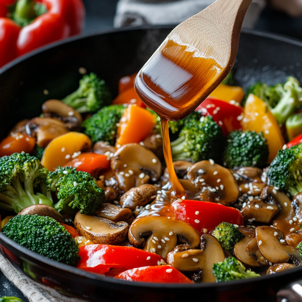 Now that our vibrant veggies are cooked to crisp-tender perfection, it’s time to bring it all together with that irresistible homemade stir-fry sauce. This is where the magic happens—the sauce coats the vegetables in a glossy, flavorful layer, giving you that restaurant-quality finish.